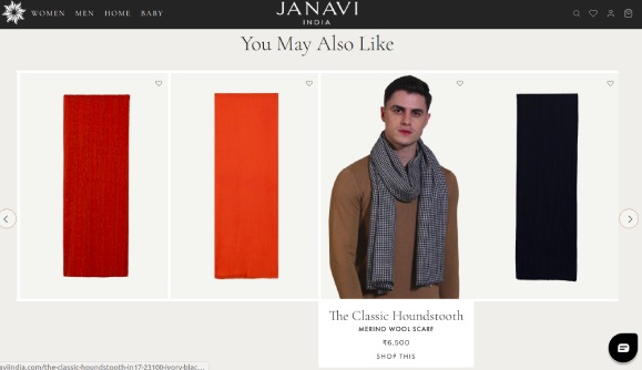 Though the name of the brand exudes Indian roots and its culture, the stuff the website showcases is totally contrary. The website is more into scarfs for men and women and some house accessories like cushions, and blankets.